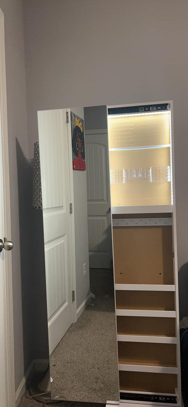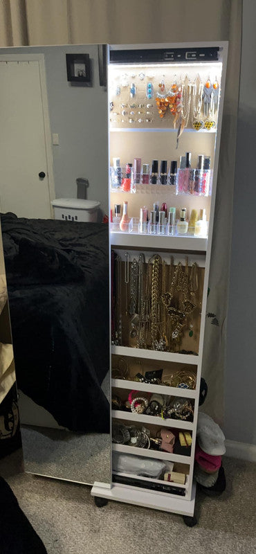 Perfekt für Liebhaber von Make-up, Accessoires und Ordnung. Dieser Schrank mit Ganzkörperspiegel verwandelt Ihr Schlafzimmer oder Ankleidezimmer in einen wahrhaft luxuriösen Schminktisch.