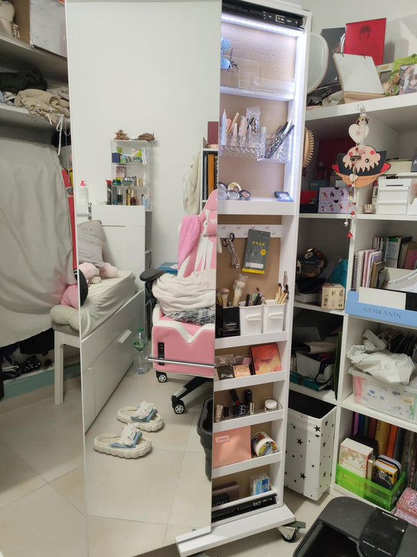 Entdecken Sie die ultimative Lösung für die Organisation Ihrer täglichen Routine: den Elva Beauty Rack Mirror . Eine perfekte Verschmelzung von Eleganz, Stauraum und Technologie, ideal für moderne Frauen, die alles organisiert und stilvoll halten möchten.