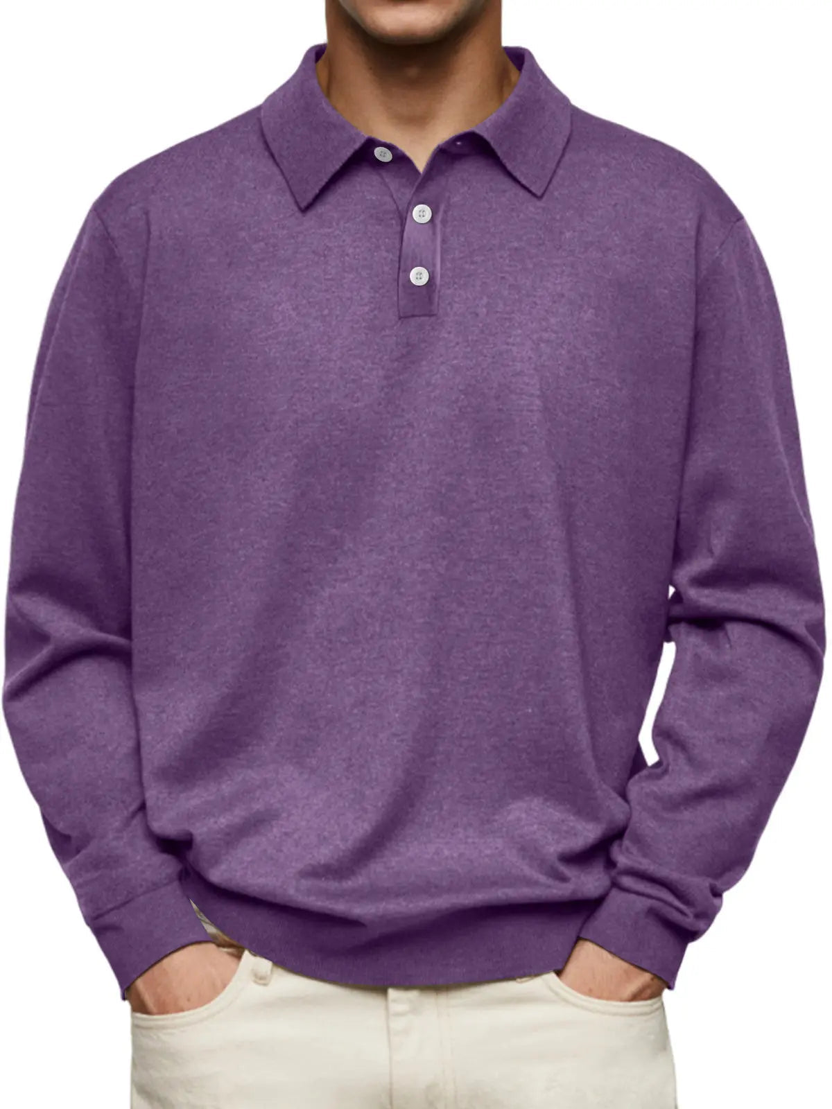 Men's Casual and Comfortable Solid Color Lapel Long Sleeve POLO Shirt