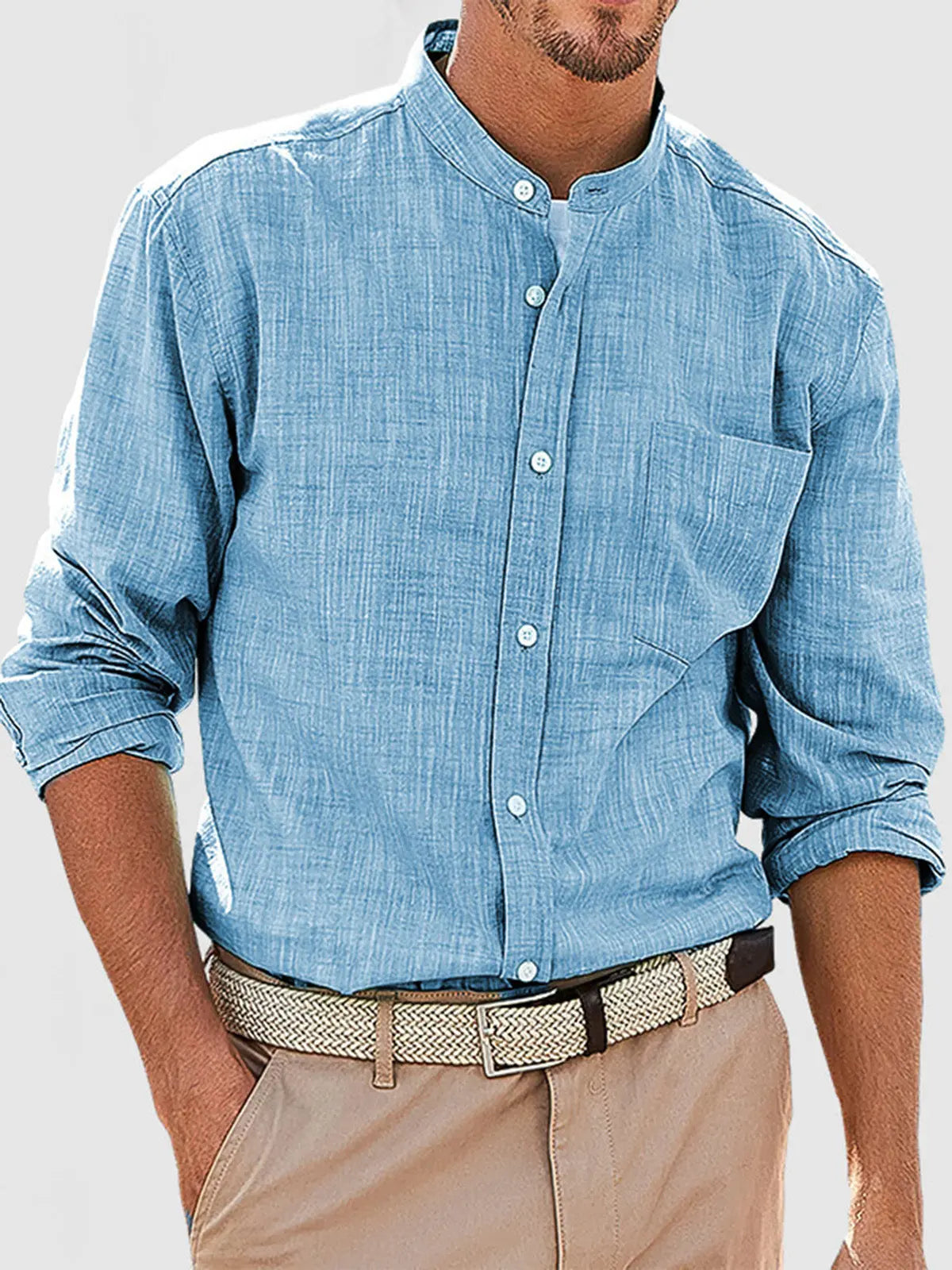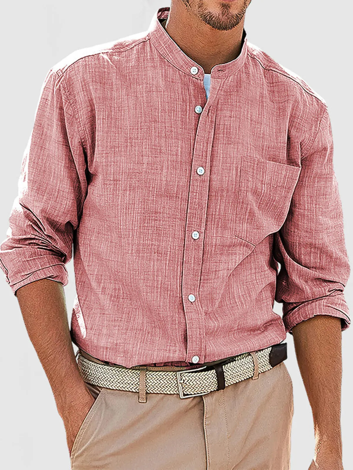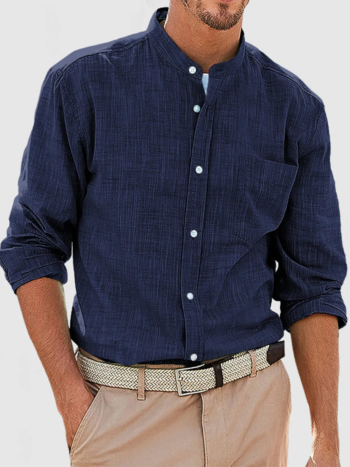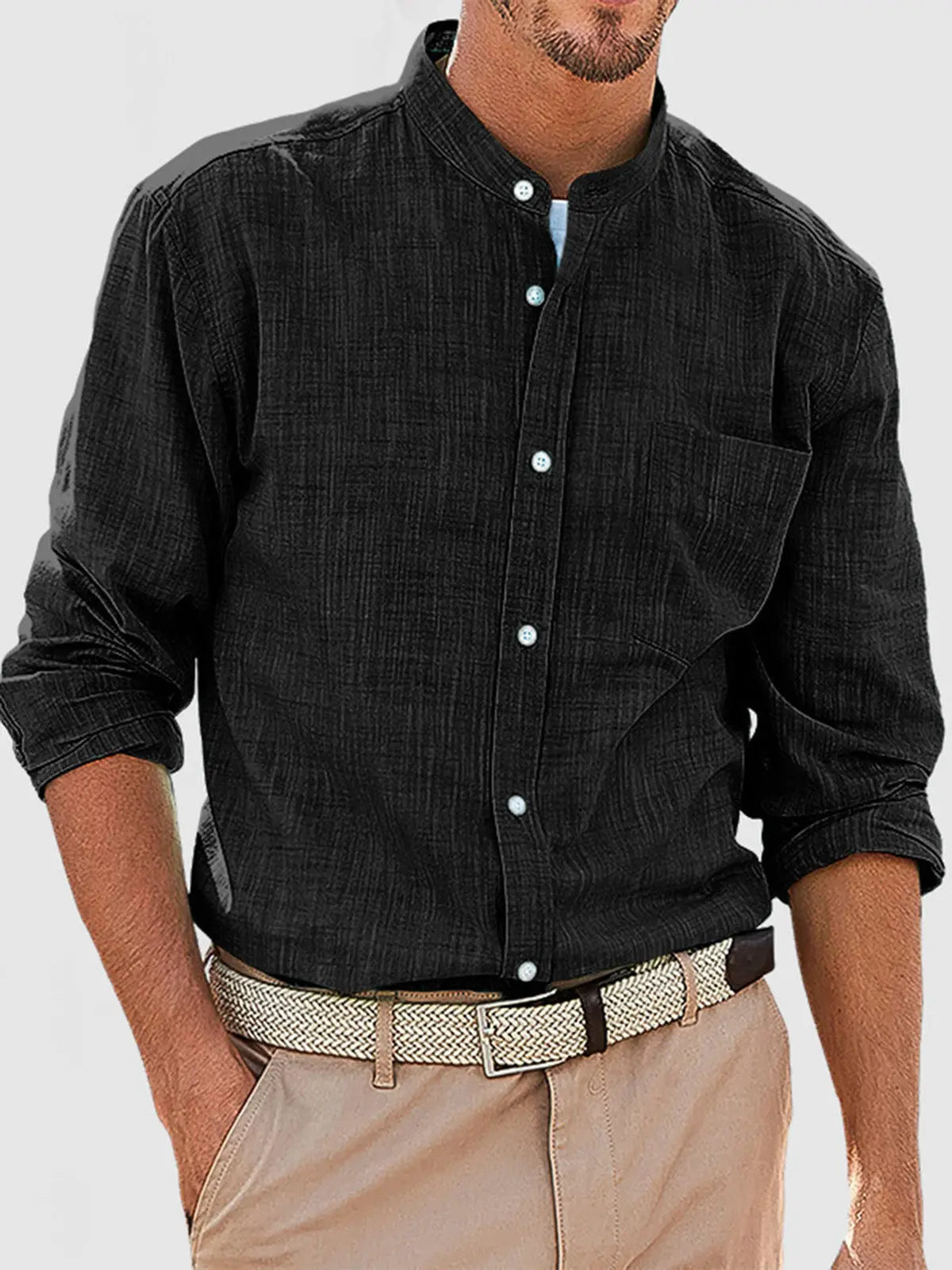 Men's Casual Daily Solid Color Simple Stand Collar Long-sleeved Shirt