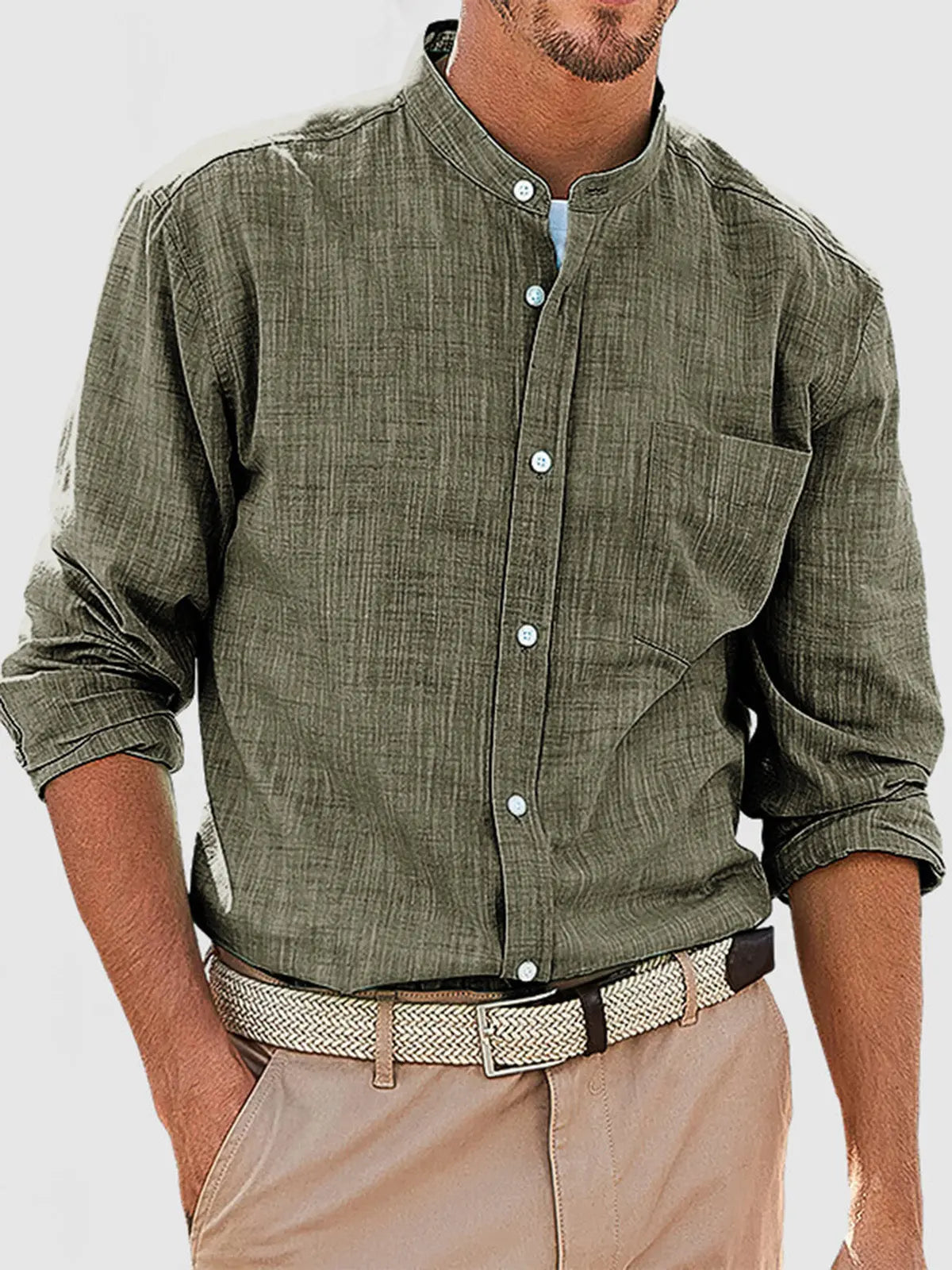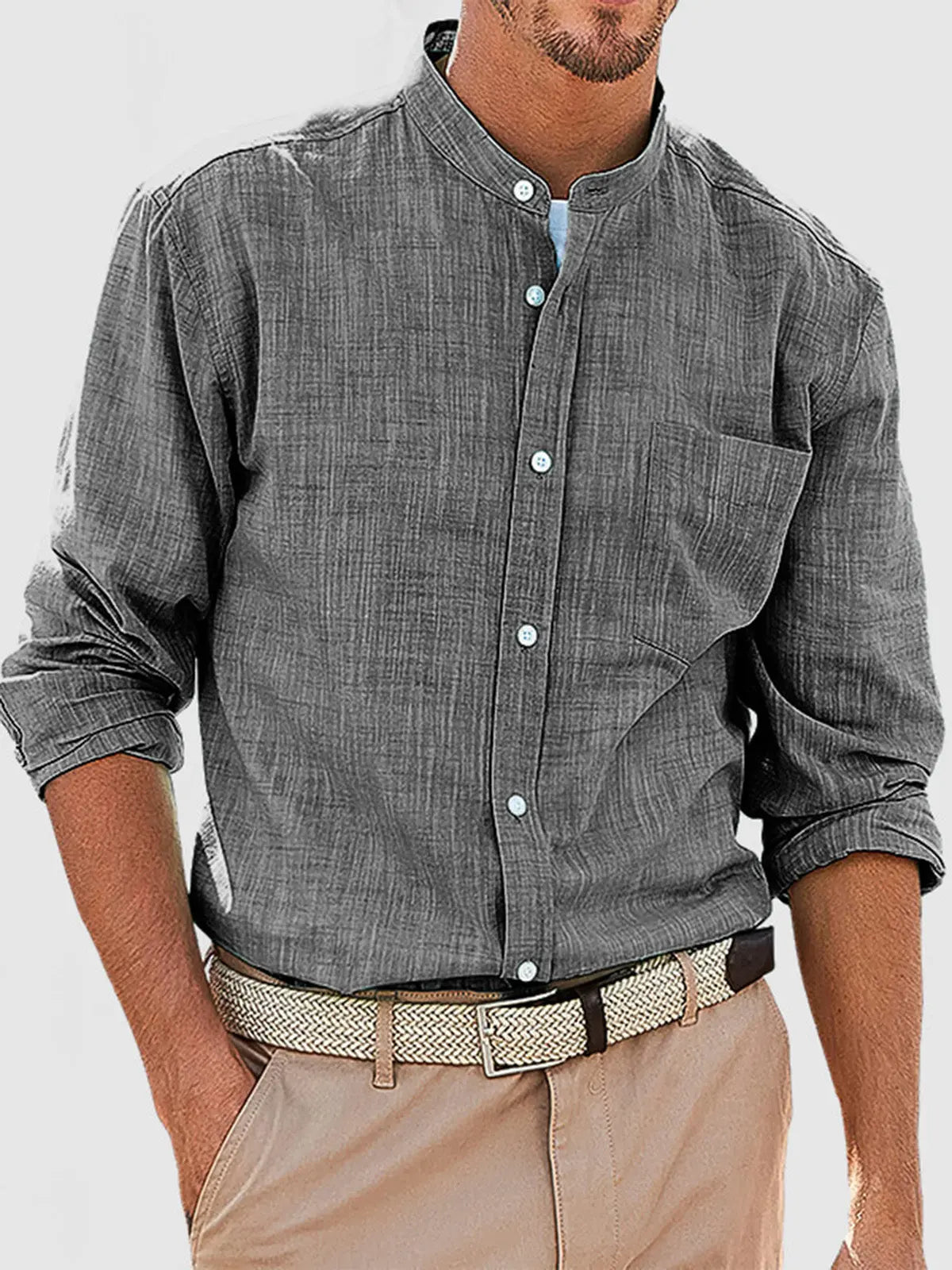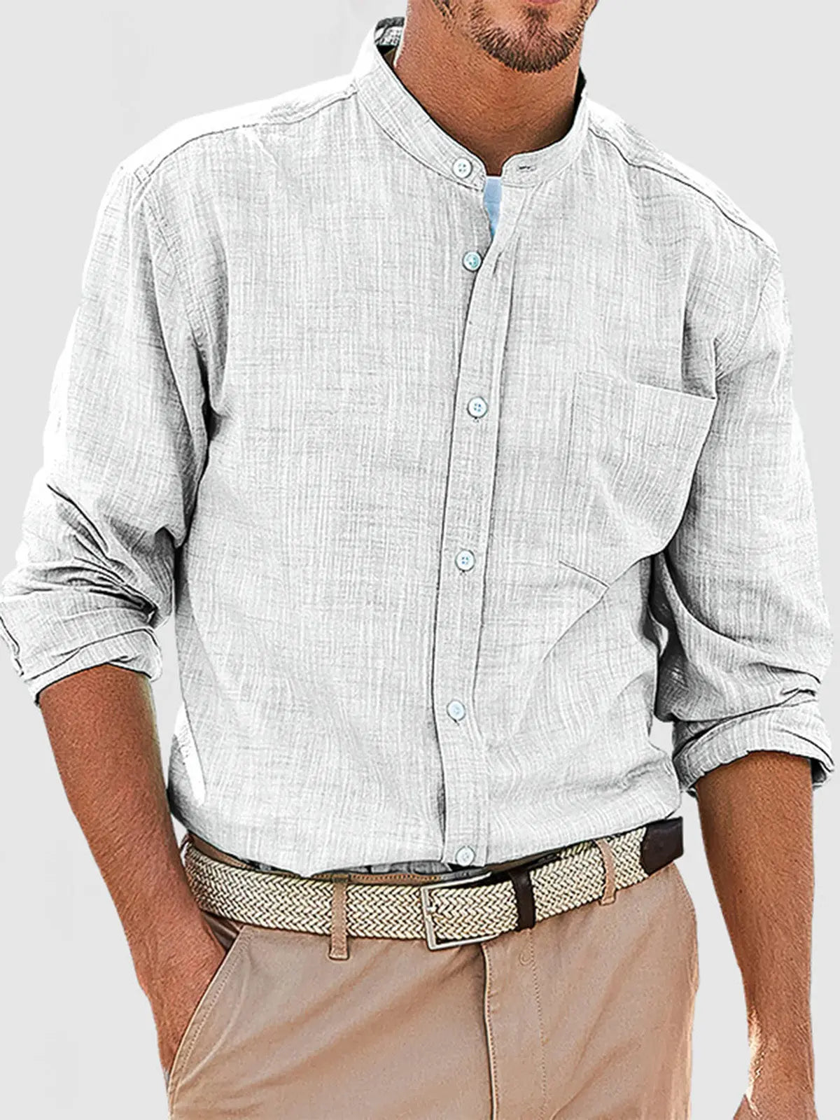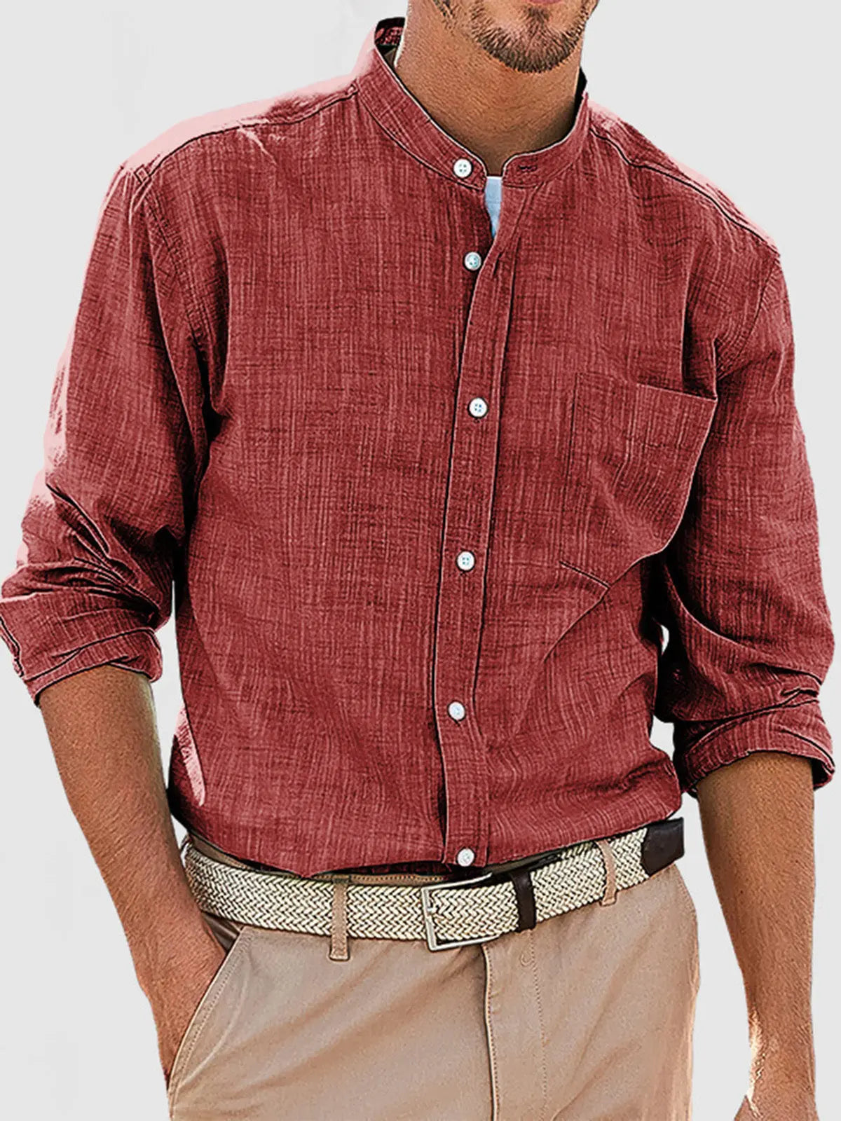 Men's Casual Daily Solid Color Simple Stand Collar Long-sleeved Shirt