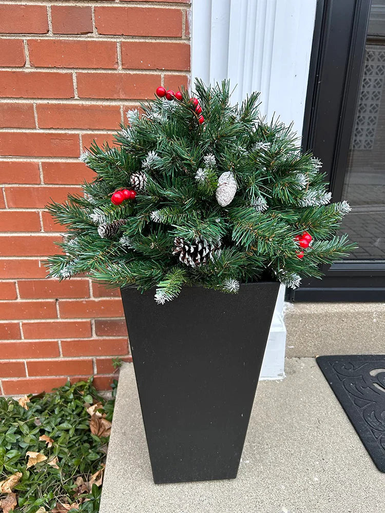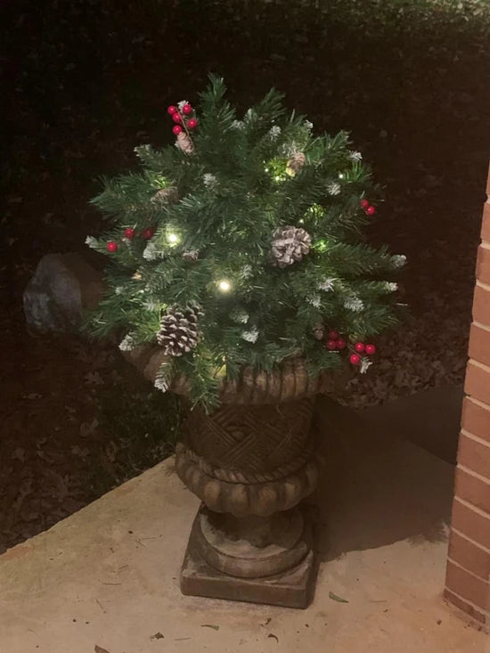 Turn any porch, patio, or entryway into a winter showpiece with the Pre-lit Artificial Christmas Tree Urn Filler. Thick, lifelike greens and warm white LEDs deliver that just-cut look without a single pine needle on the floor.